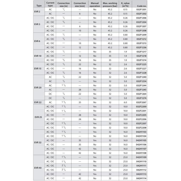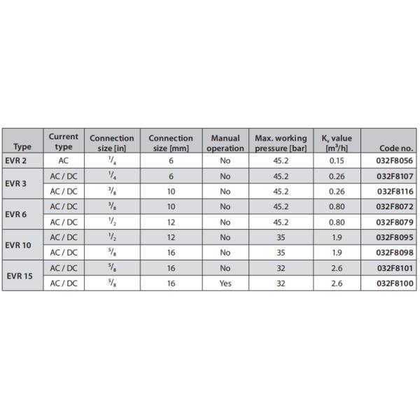 The shown is danfoss type EVR 6 solenoid valve, 3/8'' (10mm) SAE flare port size, 2 way normally closed, 12V DC, 24V DC, 24V AC, 110V AC, 220V AC voltages (other voltages can be customized), ordering code: 032F1212, 032L1212.